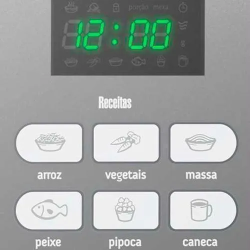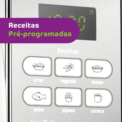 - Cozinhe como um Chef com Um Toque: Esqueça os manuais! Com 6 receitas pré-programadas (arroz, vegetais, massas, peixe, pipoca e aquecer bebidas), você prepara pratos variados na potência e no tempo ideais, garantindo resultados incríveis sem esforço.