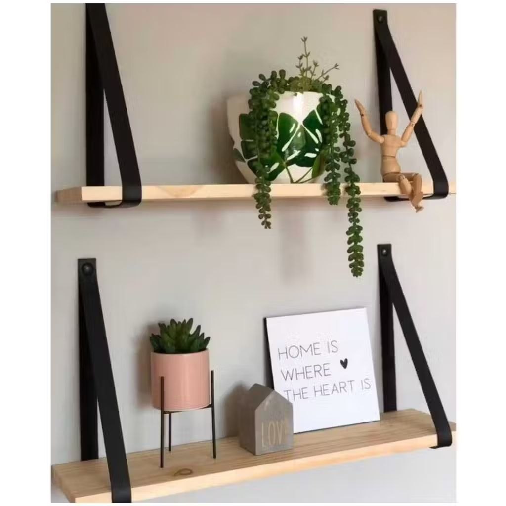Confeccionadas em madeira robusta e com alças de couro legítimo ou de alta qualidade, estas prateleiras são pensadas para durar. A escolha cuidadosa dos materiais garante não apenas a beleza, mas também a resistência necessária para suportar seus itens decorativos com segurança. O acabamento é impecável, pensado nos mínimos detalhes para que cada peça seja um verdadeiro destaque em seu lar.